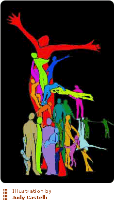 In the safety of my apartment, I take off my outside clothes and put on a comfortable, oversized T-shirt. Along with the clothes, I shed my outside skin and mind. Now I don't have to think in words or wear a grown-up expression, and all those inside me can finally be themselves. Just as waves turn the ocean inside out and rearrange the water, different ones of us cycle in and out in an ebb and flow that is sometimes gentle, sometimes turbulent. A child colors with Crayola markers that a teenager bought her the day before. The child moves aside to make way for the administrator, who reconciles the bank statement. A moment later the dead baby takes over and lies paralyzed on the floor, staring unseeing at the ceiling. She remains that way for a while, but no one gets upset -- it's her turn. The constant, easy switching continues. The live baby stops in her crawl, engrossed by a speck of dust. The cooker prepares meals for three days and packages each separately -- we all have different likes and dislikes. A terrified one screams aloud, a wounded one moans, a grieving one wails. Cooking and screaming often go on simultaneously, as more than one of us can be out at a given time. Someone talks to someone else, then pauses to listen to the response, which I cannot hear, as I don't yet know everyone in me. "You little Shit! Leave me alone!" Pause. "I told you, I didn't do that." I have no idea what this is about, but I feel no anxiety, pain or fear, despite the ominous words.